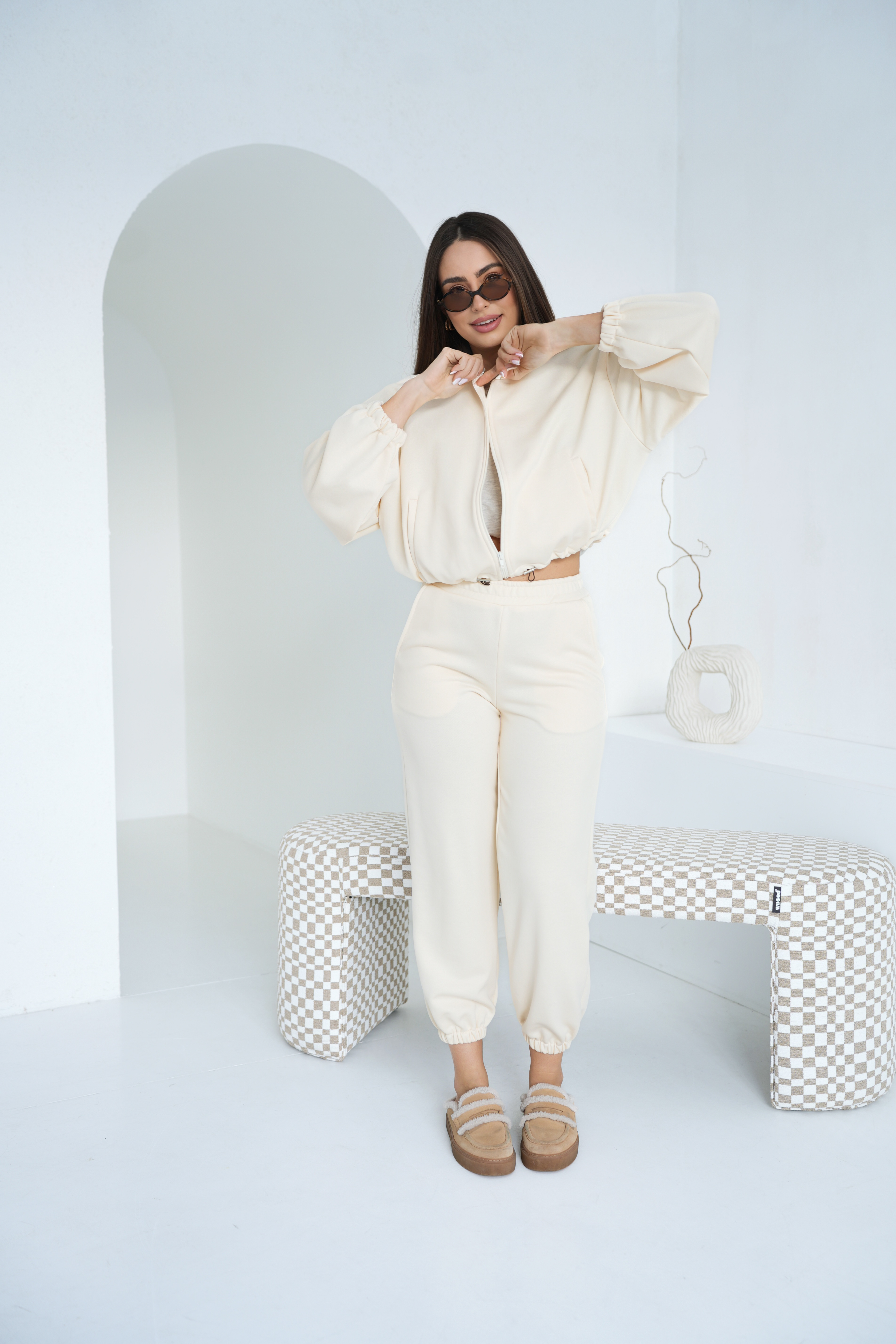 Spodnie mają elastyczną talię na gumce, dzięki czemu dobrze dopasowują się do ciała i są wygodne w codziennym użytkowaniu. Nogawki zakończone gumką nadają całości sportowego charakteru i utrzymują proporcje sylwetki. To prosty, uniwersalny zestaw nastawiony na wygodę i praktyczność.