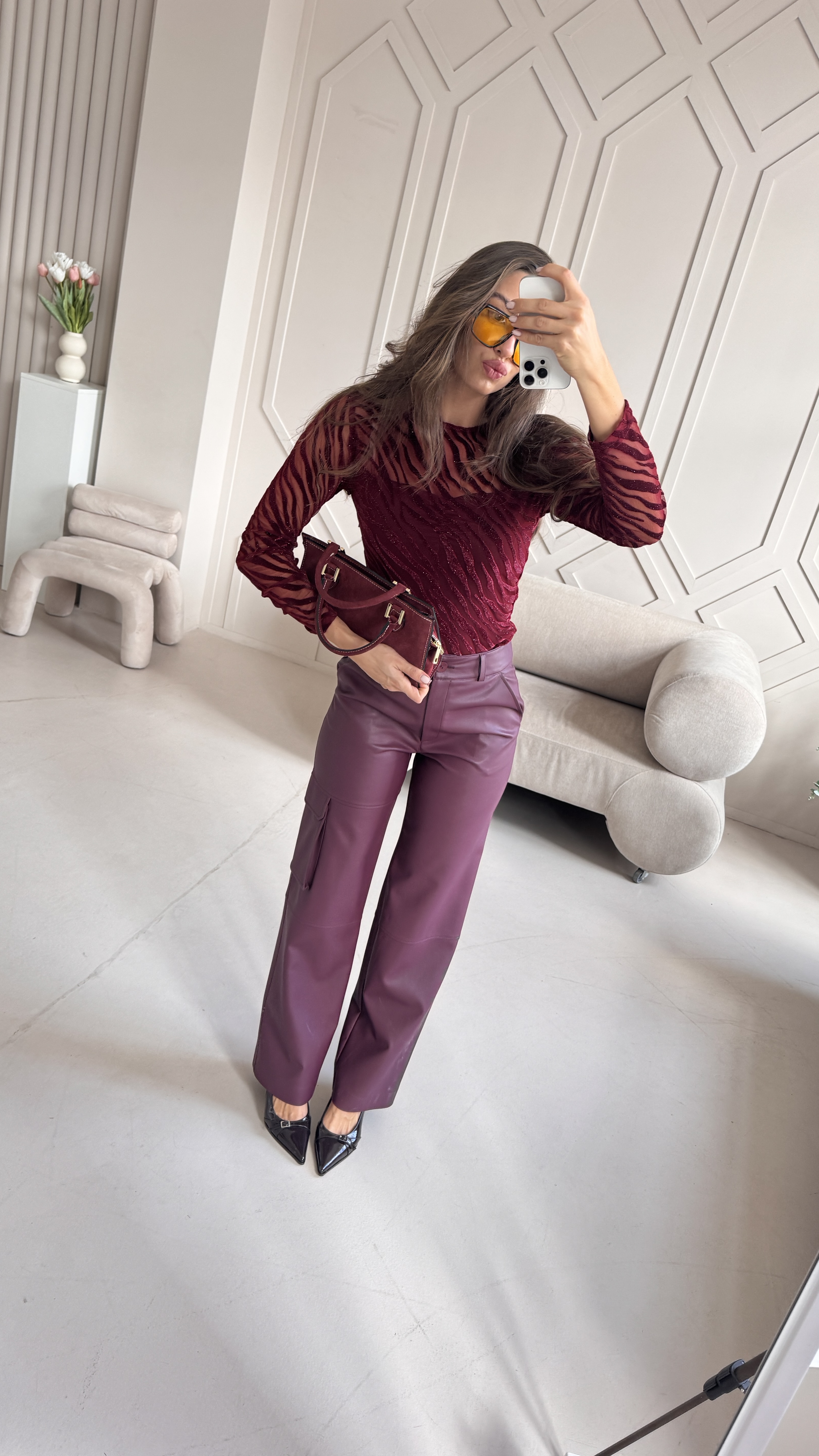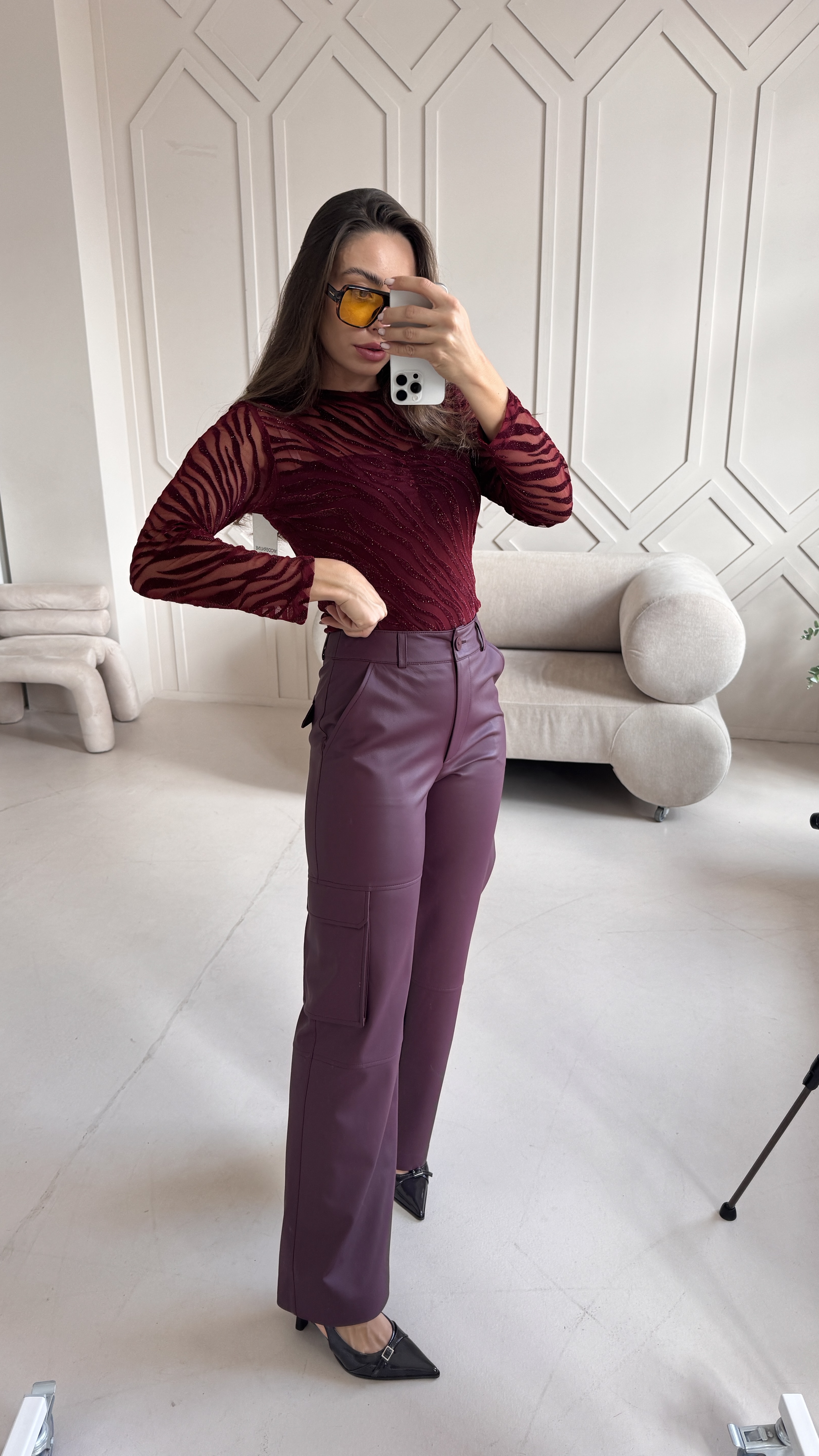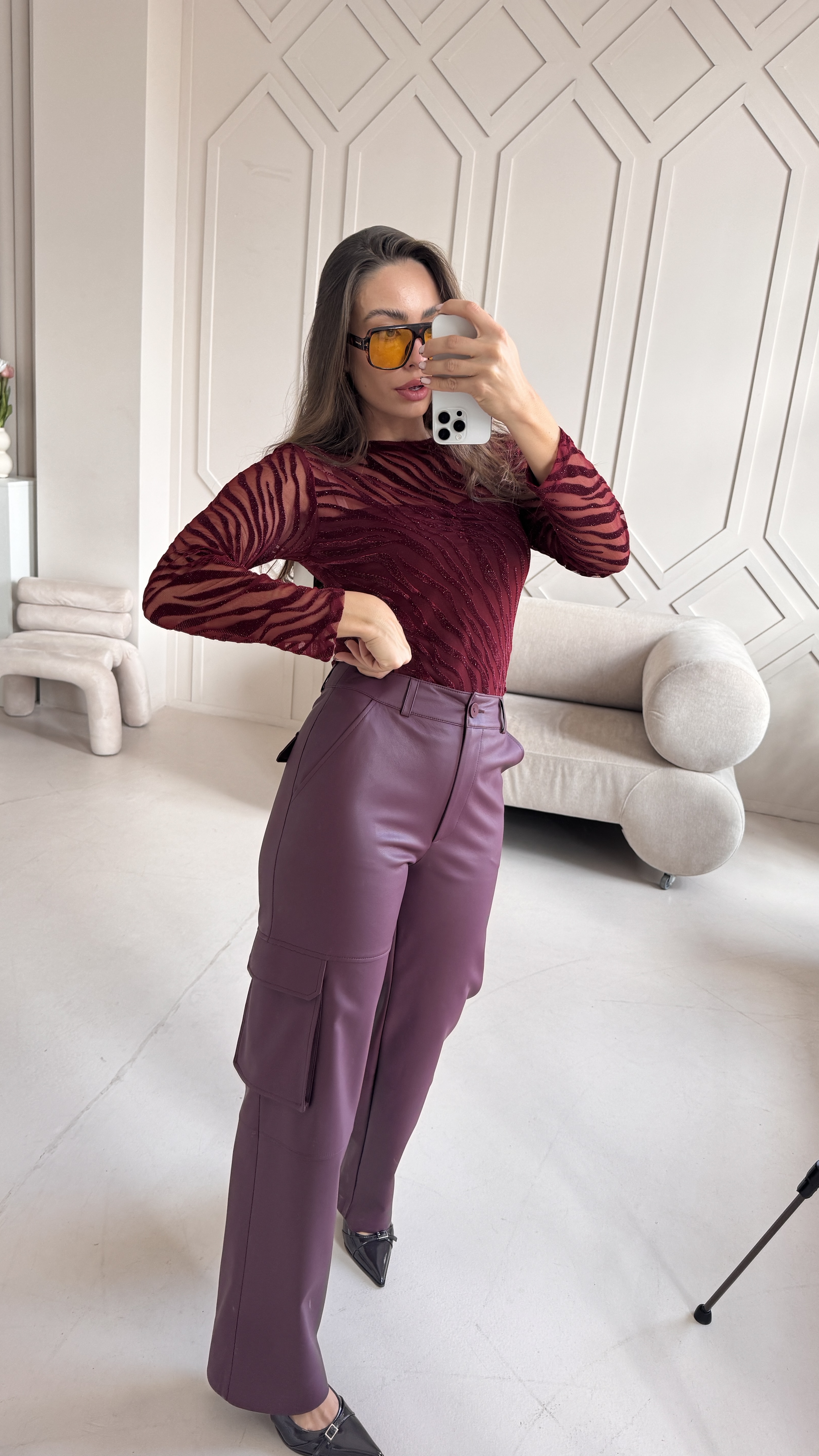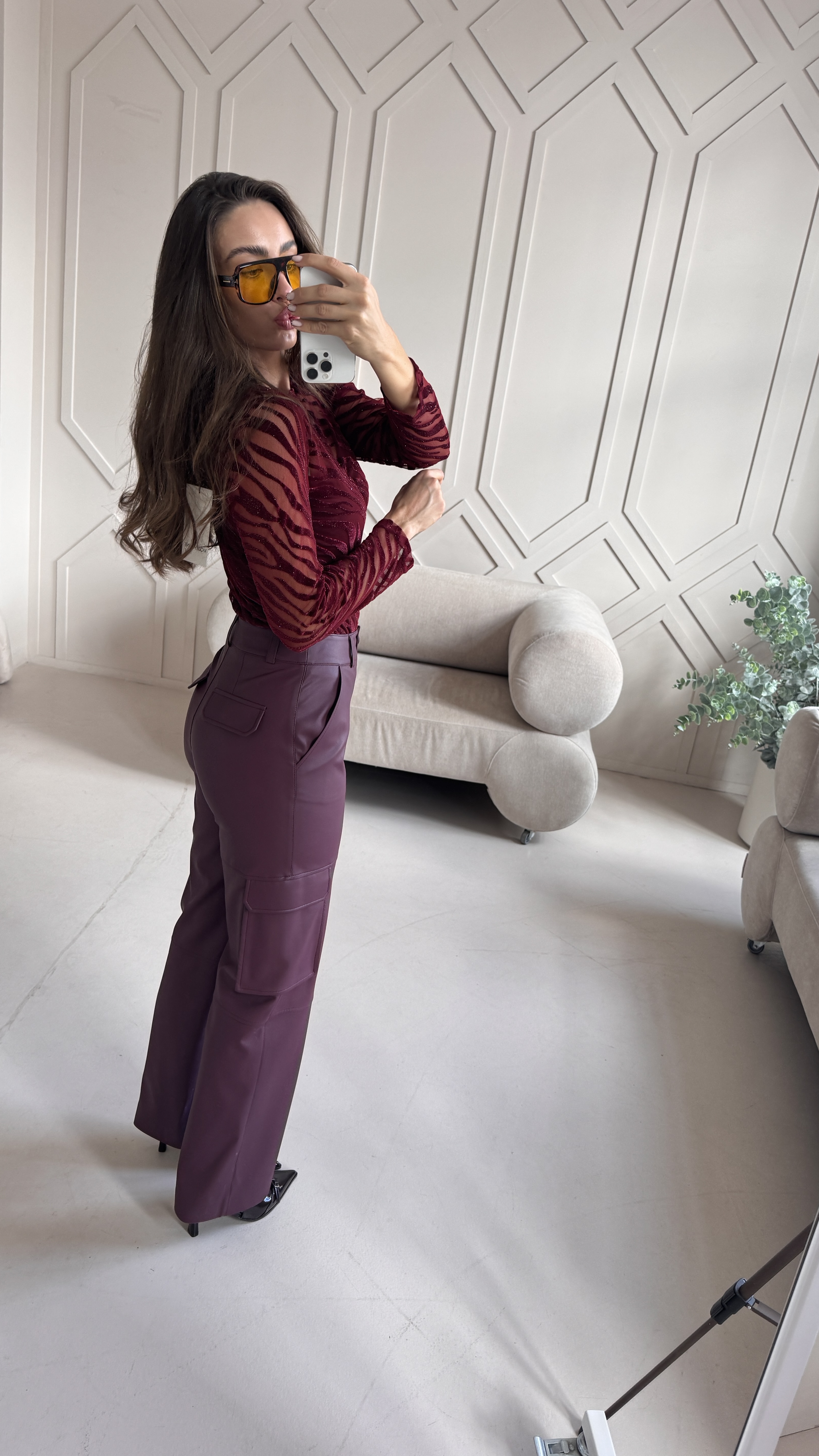 Bojówki z eko-skóry to odważne połączenie klasycznego fasonu cargo z nowoczesnym wykończeniem. Wykonane z miękkiej i elastycznej skóry ekologicznej, łączą w sobie funkcjonalność i wyrazisty charakter. Dzięki prostemu krojowi z kieszeniami na udach są nie tylko stylowe, ale też praktyczne, idealne do codziennych, miejskich stylizacji.