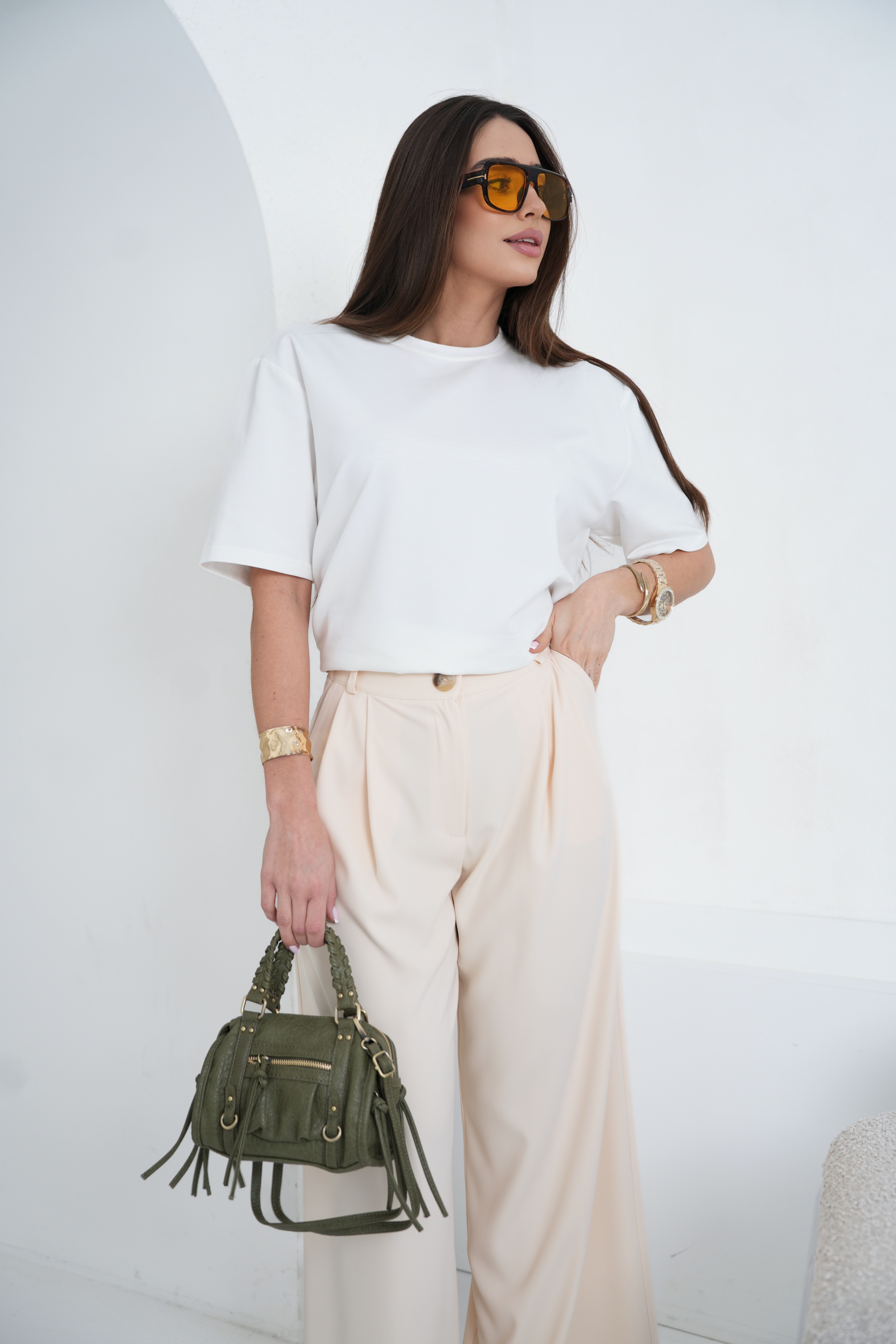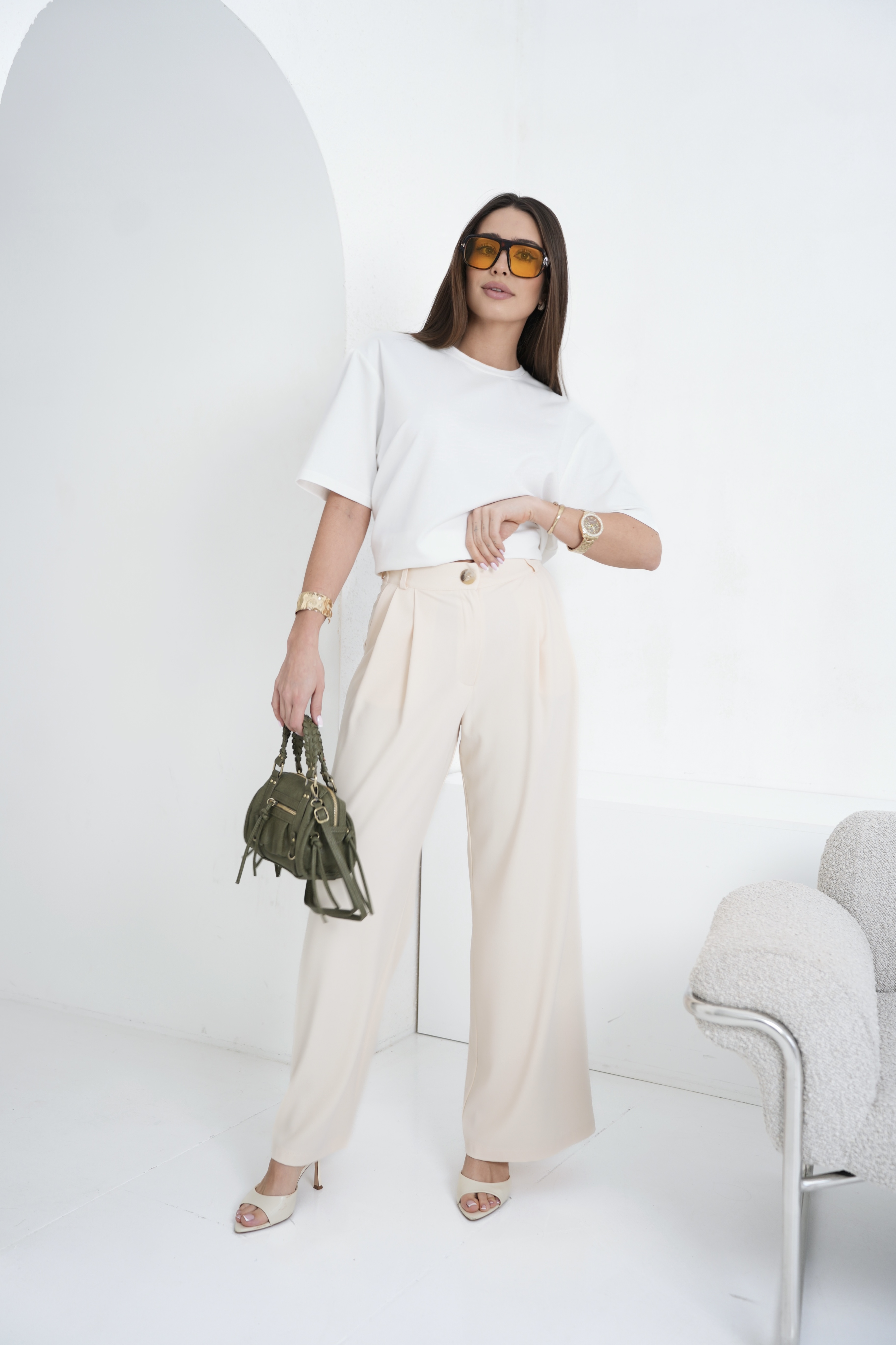 Szerokie spodnie to klasyka w nowoczesnym wydaniu. Wykonane z lekkiej, lejącej się wiskozowej tkaniny, zapewniają komfort noszenia i swobodę ruchów. Elegancki, prosty krój z szeroką nogawką optycznie wydłuża sylwetkę.