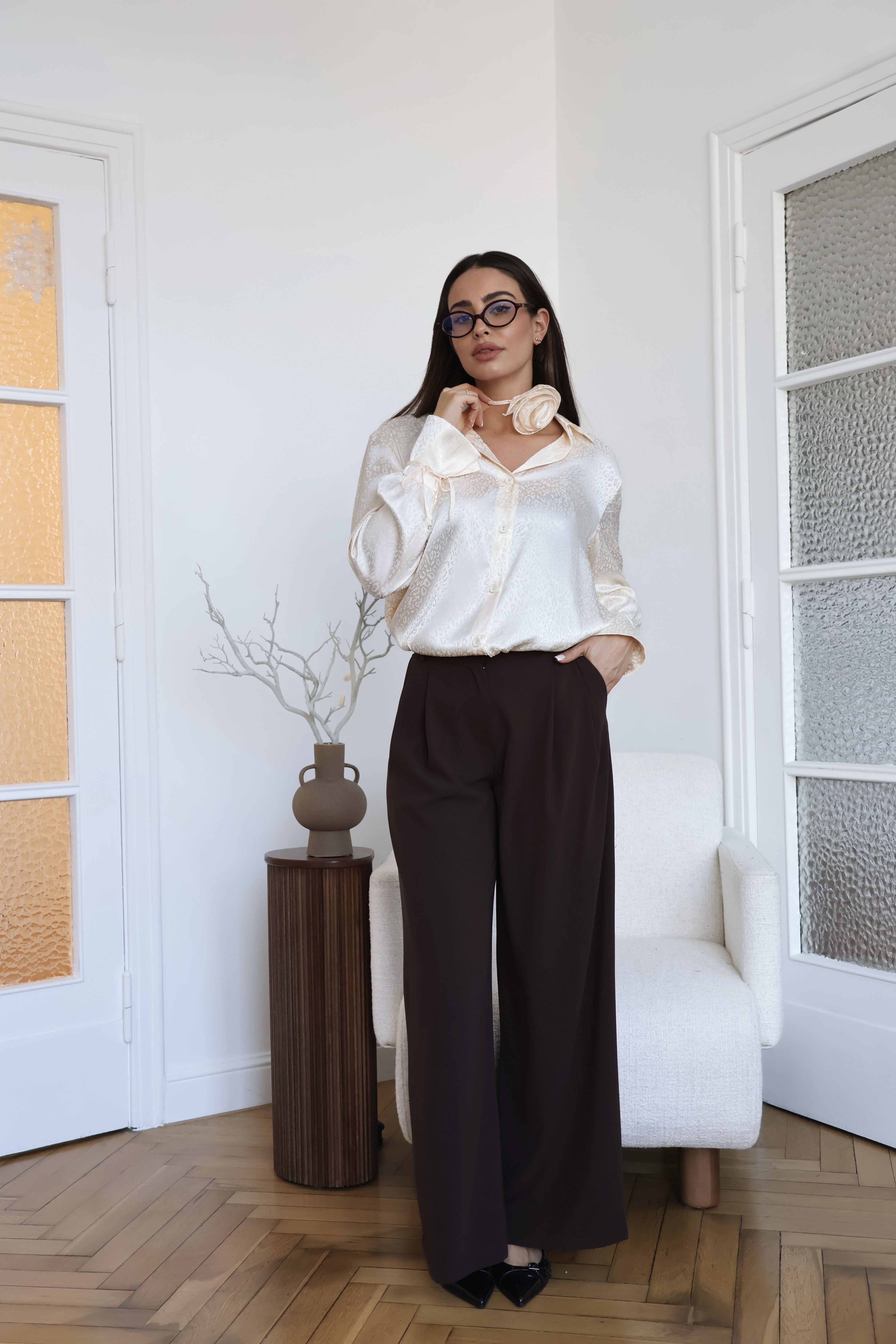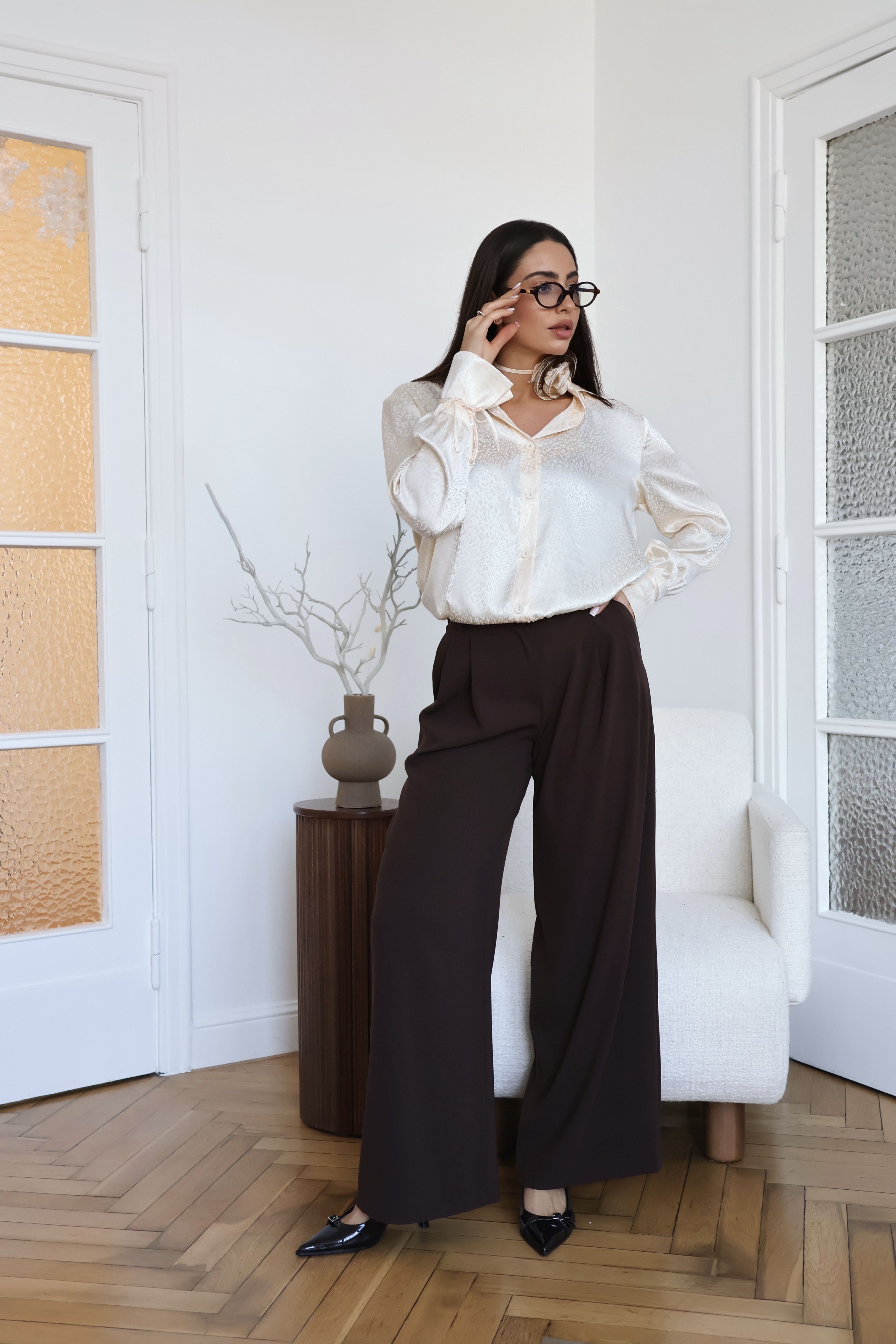 Szerokie spodnie to klasyka w nowoczesnym wydaniu. Wykonane z lekkiej, lejącej się wiskozowej tkaniny, zapewniają komfort noszenia i swobodę ruchów. Elegancki, prosty krój z szeroką nogawką optycznie wydłuża sylwetkę.